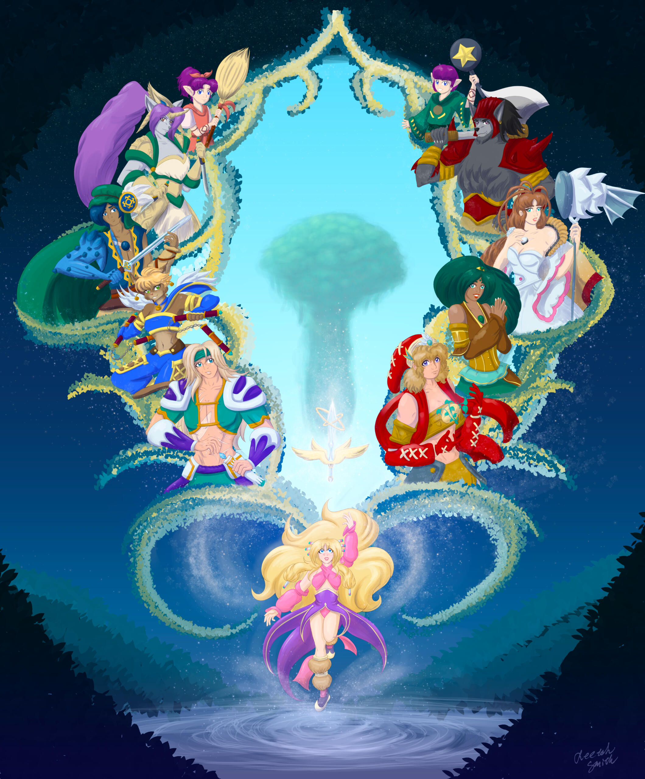 Characters: Heroine, Hero, Escad Liotte, Daena, Elazul, Pearl, Larc, Sierra, Bud, Lisa, EsmeraldaAn epic retelling of a Legend, and a Love Story never before told... 900 years ago, the Mana Tree burned to the ground. Since then, the Tree has regrown, corrupted and rotten with evil; Fa'Diel is dying. A girl named Anli and a boy named Kaleb are the ones chosen by the Goddess to save the broken world. This is their story.